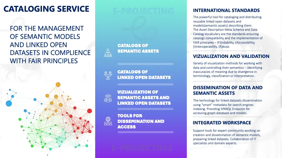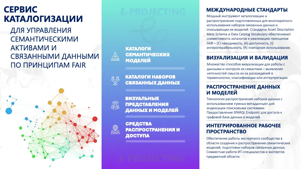 Легко решайте сложные задачи управления моделями, описывающими данные. Принципы FAIR – (F) находимость, (A) доступность, (I) интероперабельность, (R) повторное использование – поддерживаются мощным инструментом для упорядочивания, поиска и распространения семантических активов, построенном на базе международных стандартов
