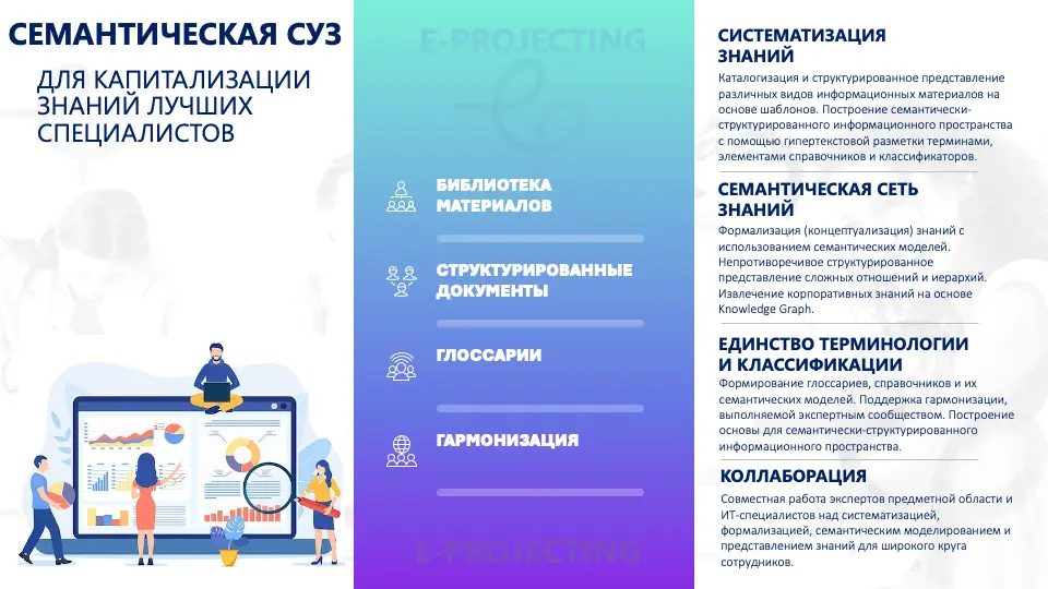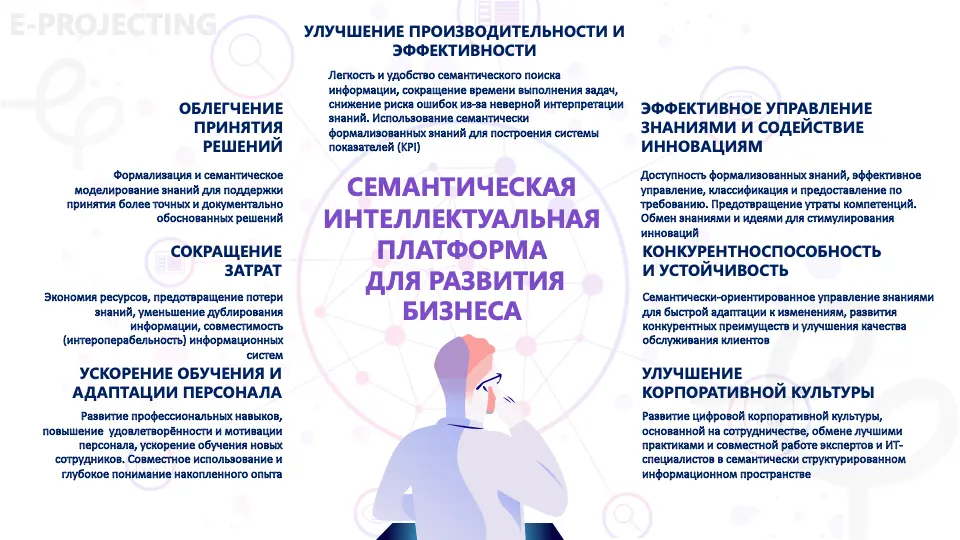 Откройте новые возможности управления знаниями, сохраняя инвестиции в условиях стремительной цифровой трансформации бизнеса. Semantic KMS обеспечивает систематизацию и точное понимание корпоративной информации. Семантические технологии, интуитивно понятные интерфейсы и инструменты анализа позволяют сохранять, извлекать и использовать знания с максимальной эффективностью, улучшая принятие решений и стимулируя инновации