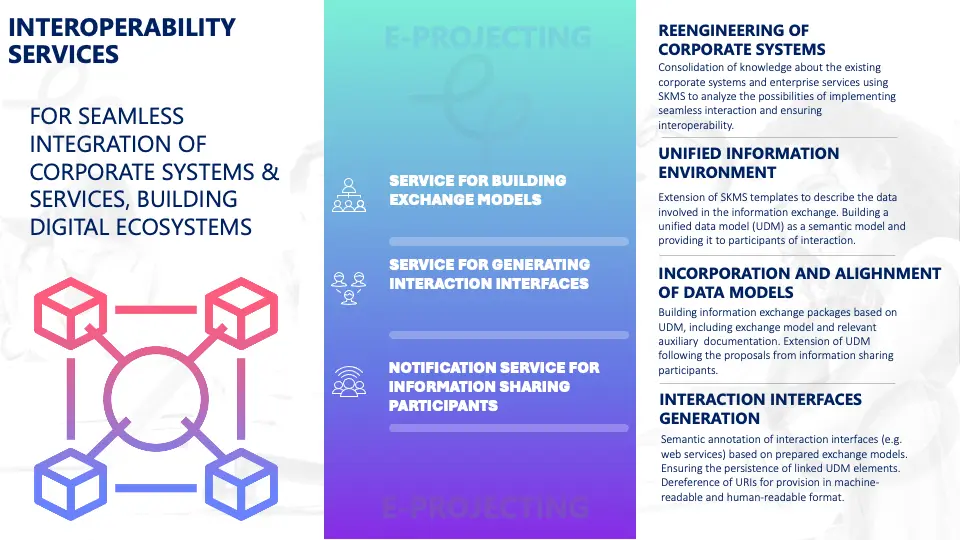 Интегрируйте корпоративные платформы и системы в единое информационное пространство без дорогостоящих доработок. Сервисы интероперабельности поддерживают бесшовное взаимодействие, бесперебойный обмен данными, улучшают совместимость разрозненных приложений и данных для слаженной и эффективной работы